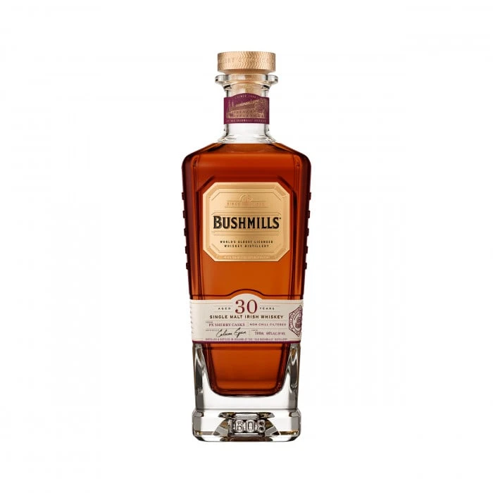 The pinnacle of Bushmills obsession with oak, and perfection in Irish single malt whiskey, Bushmills 30 Year Old is a stunningly rare expression from the world’s oldest licensed distillery. Aged in bourbon barrels and sherry butts for an initial 14 years, the liquid was then finished in a first-fill Pedro Ximénez sherry casks for a further 16 year slumber. Only 1,500 bottles have been crafted. Bottled at 46% abv, and free from chill filtration.