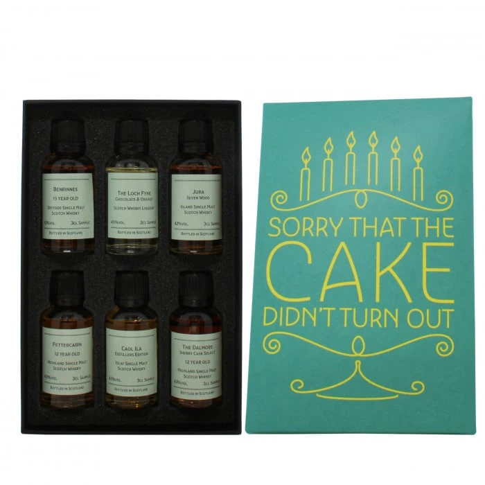 Left baking a cake a little too late? Don’t worry – we’ve got you covered! Gift the whisky fan in your life with our top-knotch gift pack.Included within this set is the Benrinnes 15 Year Old, The Loch Fyne Chocolate & Orange Liqueur, Jura Seven Wood, Fettercairn 12 Year Old, Caol Ila Distillers Edition, and The Dalmore Sherry Cask Select 12 Year Old.