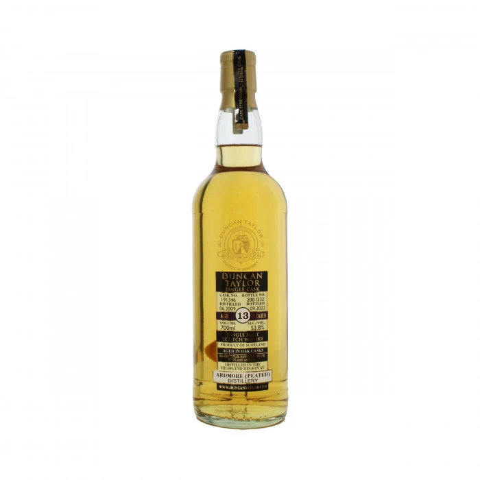 From renowned bottlers Duncan Taylor, the 13-year-old single malt was distilled at Ardmore distillery in the Highland region. Aged in a single oak cask, the stellar peated expression is one only of 232 bottles and decanted at a cask strength of 53.8% abv.