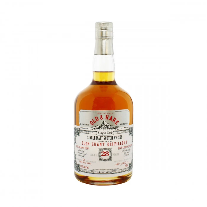 Distilled at Glen Grant Distillery, this Speyside Region whisky is a part of Hunter Laing & Co.’s Platinum Old & Rare selection. The grand expression was aged for 28 years in a single refill barrel, and is one of only 124 bottles. Bottled at an impressive natural cask strength of 63.8% abv, and free from chill filtration.