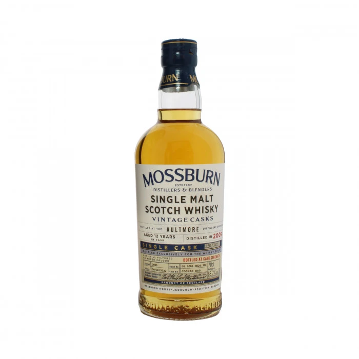 We are excited to introduce a collection of four independent single cask releases from Mossburn which are exclusive to our customers at The Whisky Shop! This Aultmore expression was distilled in 2009 and matured for 12 years in a Cognac hogshead, limited to 342 bottles and at a cask strength of 63.7% abv. This dram is free from chill filtration and is left at natural colour.