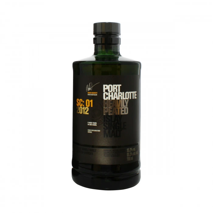 Bruichladdich present this wonderfully bbq smoky sweet expression, released as a part of their heavily peated Port Charlotte range. The single malt has been made with 100% Islay barley, and matured in a combination of sherry butts and American oak casks with a finish in Sauternes wine casks. Bottled at 55.2% abv, and free from chill filtration.