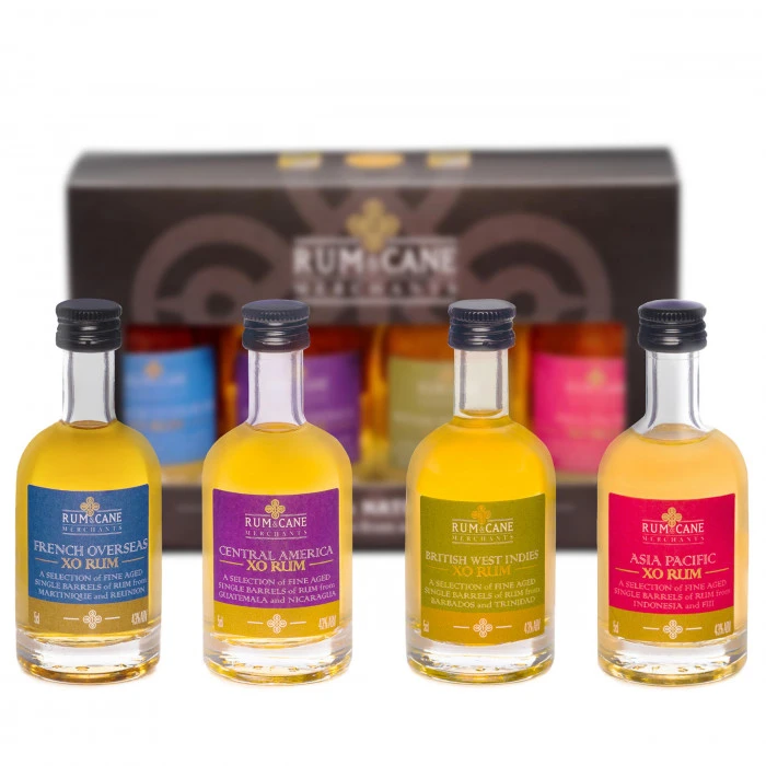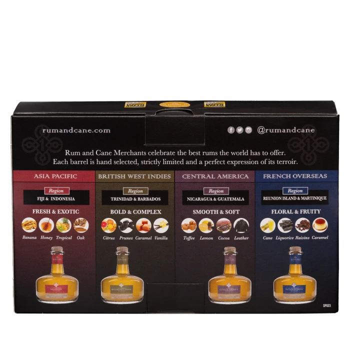 Each pack contains 5cl drams from the following rum regions: French Overseas, British West Indies, Asia Pacific and Central America.