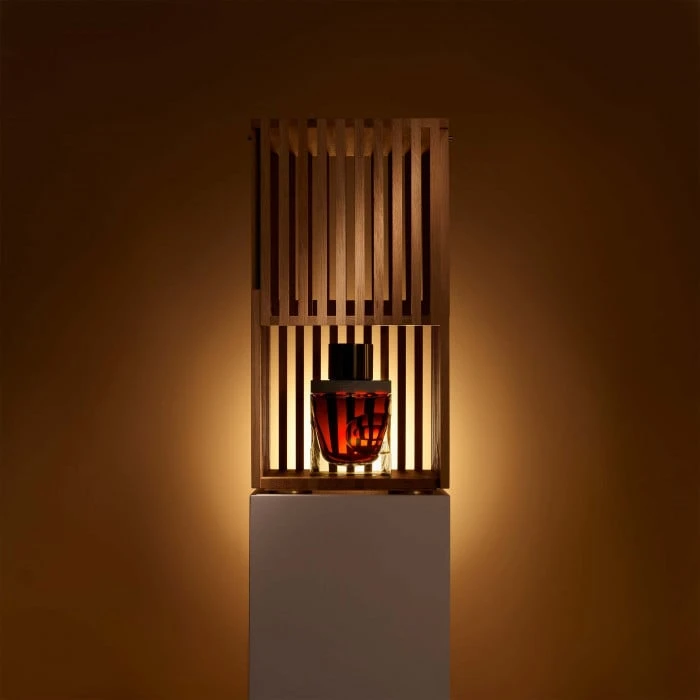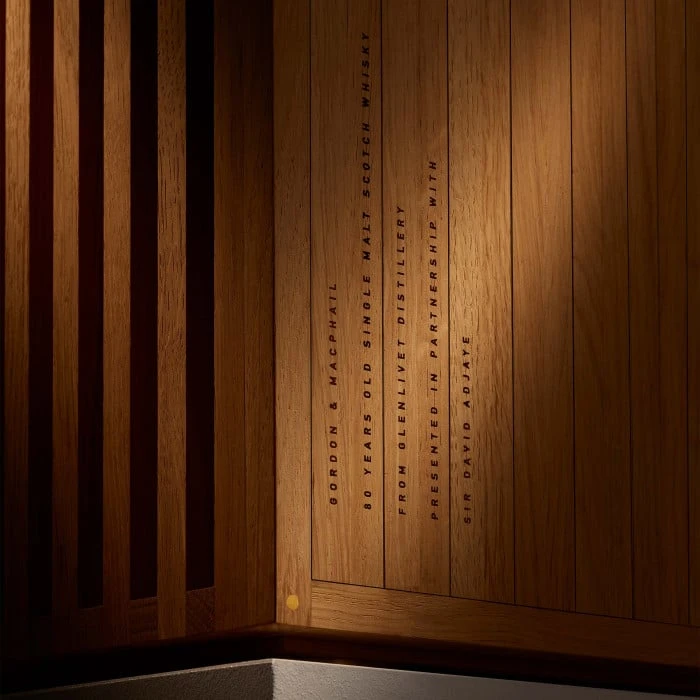 The design for the bottle and presentation box was done by Sir David Adjaye OBE, internationally renowned architect and designer. The decanter and glassware have been specially produced by Glencairn Crystal Studio, the pavilion oak case coming from Wardour Workshops in Dorset, England.