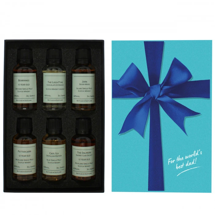 Wrapped up in a bow, this lovely gift pack of tasting whiskies is perfect only for the World’s Best Dad. Presented in 3cl bottles, it features six of the very best expressions from every corner of Scotland: